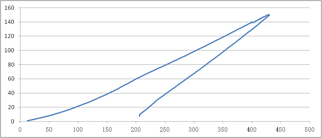 圖3 壓痕深度值隨時(shí)間變化(X軸單位:1/40秒;Y軸單位:微米)