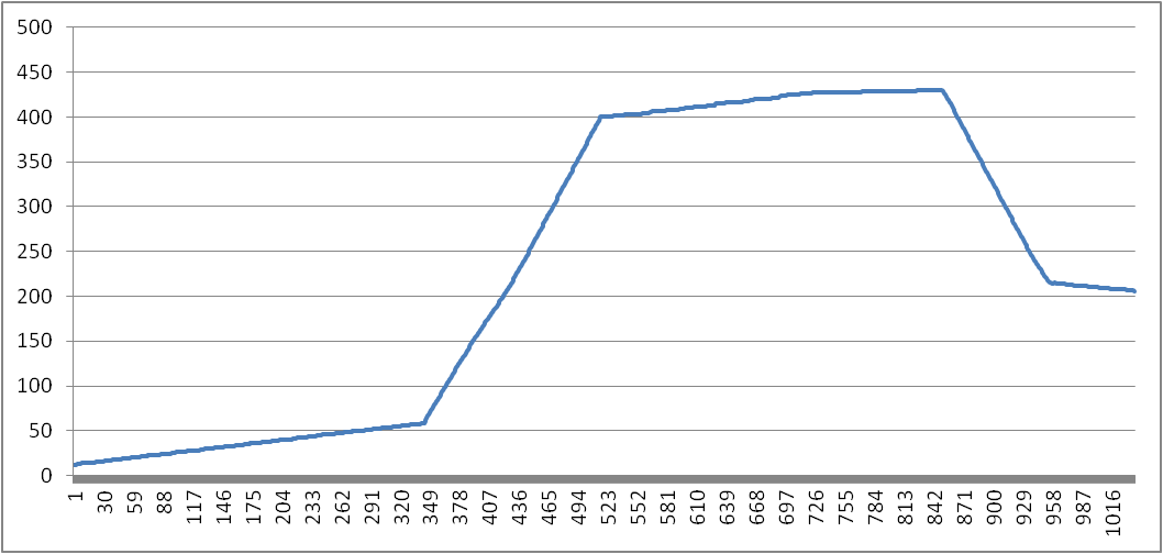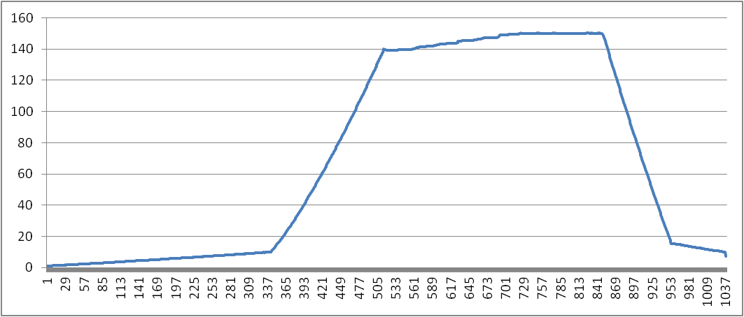 圖2 載荷隨時(shí)間變化(X軸單位:1/40秒;Y軸單位:公斤)