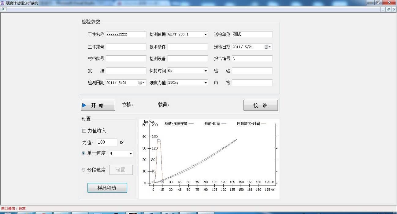 加載和卸載曲線測量界面
